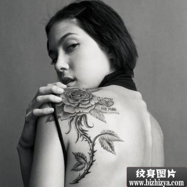 女生肩部欧美黑白玫瑰图案图片_玫瑰花纹身图案大全_纹身图吧