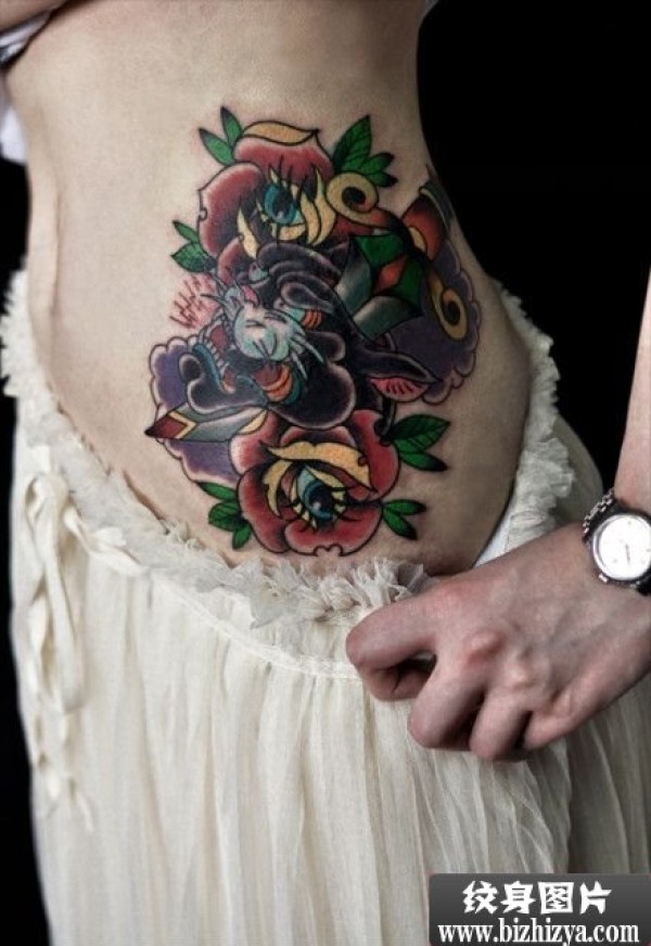 性感蕾丝玫瑰腹部纹身_玫瑰花纹身图案大全_纹身图吧