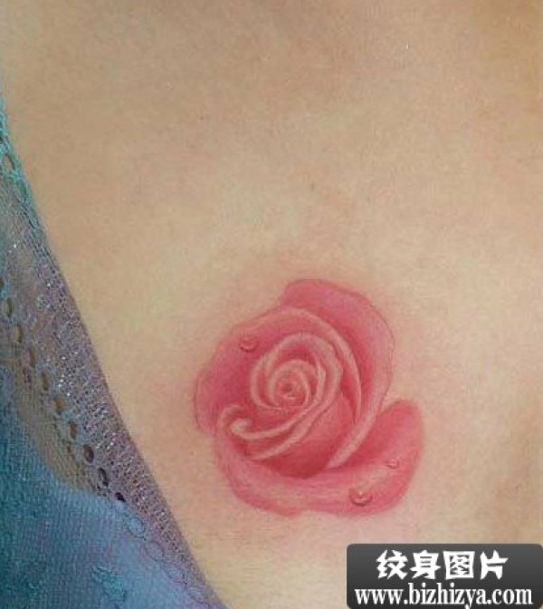 性感胸部漂亮粉色的玫瑰花图案图片_玫瑰花纹身图案大全_纹身图吧