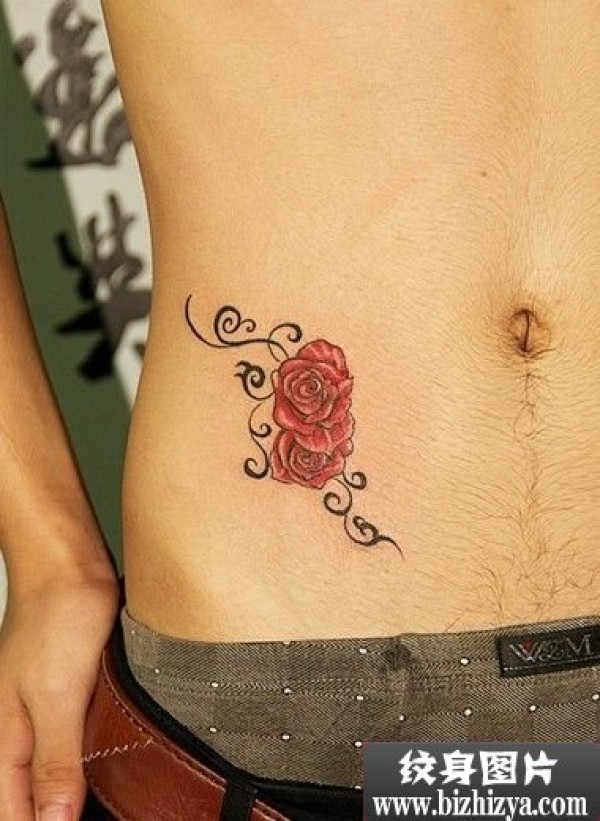 男生腹部个性玫瑰时尚纹身图案图片_玫瑰花纹身图案大全_纹身图吧