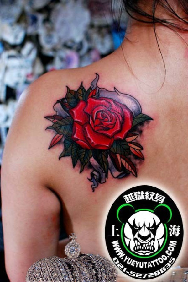 背部红玫瑰纹身图案上海越狱纹身店作品_玫瑰花纹身图案大全_纹身图吧