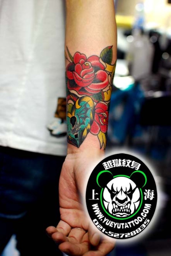 手臂玫瑰爱心锁纹身图案_玫瑰花纹身图案大全_纹身图吧