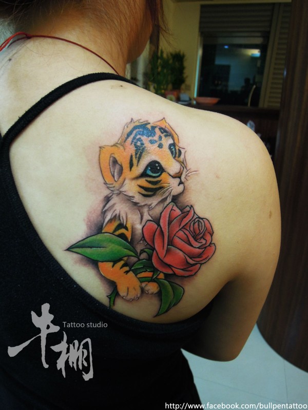 推荐一款可爱时尚的老虎玫瑰花纹身图案_玫瑰花纹身图案大全_纹身图吧