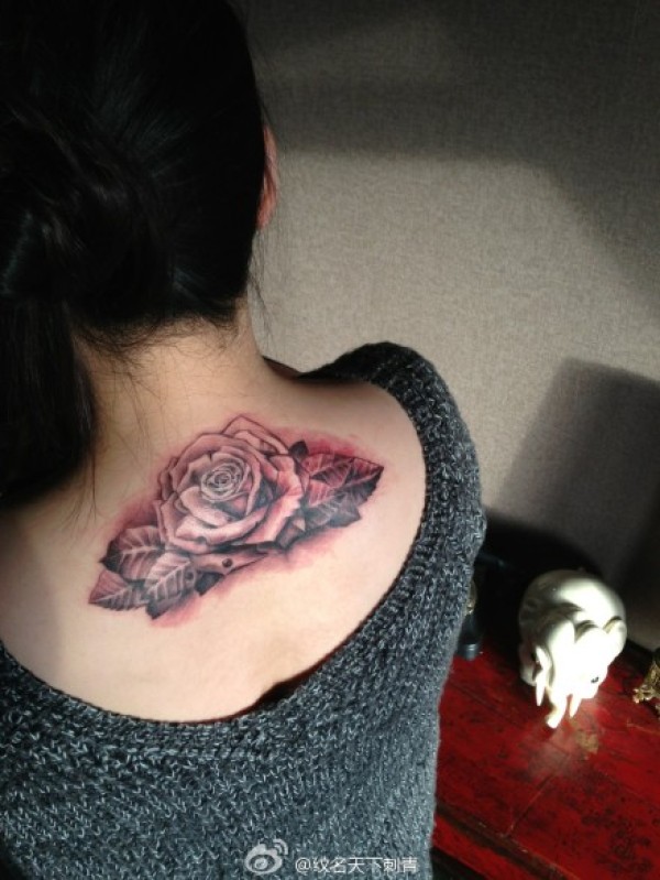 女生后脖子精美的黑灰玫瑰花纹身图案_玫瑰花纹身图案大全_纹身图吧