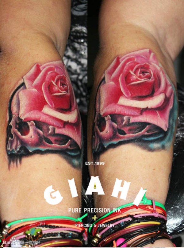 手臂时尚好看的粉玫瑰纹身图案_玫瑰花纹身图案大全_纹身图吧