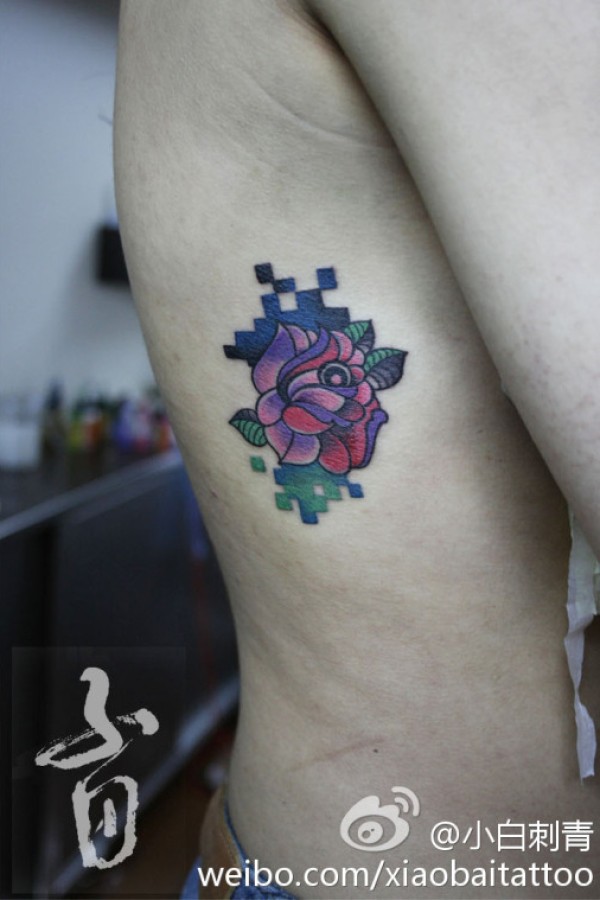美女侧腰好看精美的玫瑰花纹身图案_玫瑰花纹身图案大全_纹身图吧