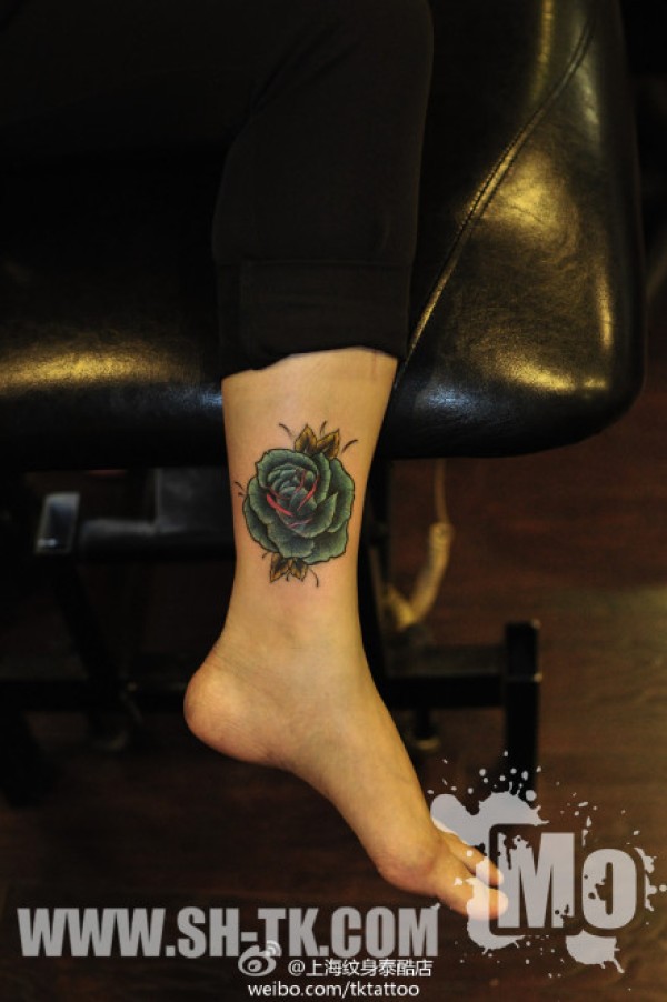 女生腿部潮流唯美的玫瑰花纹身图案_玫瑰花纹身图案大全_纹身图吧