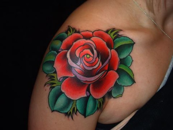 推荐一款超酷时尚的肩膀玫瑰花纹身图案_玫瑰花纹身图案大全_纹身图吧