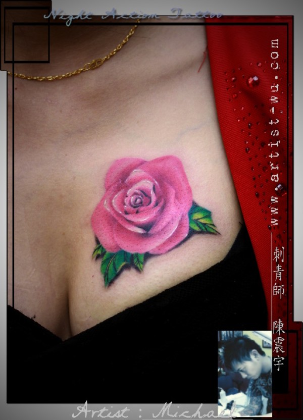 时尚胸部玫瑰花纹身_玫瑰花纹身图案大全_纹身图吧