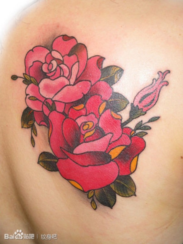 肩背时尚漂亮的玫瑰花纹身图案_玫瑰花纹身图案大全_纹身图吧