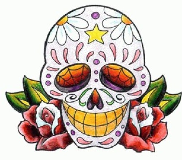 分享一款时尚潮流的骷髅玫瑰纹身图案_玫瑰花纹身图案大全_纹身图吧