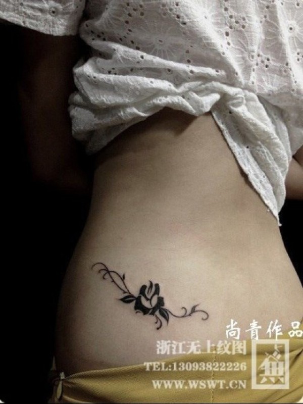 女生后腰唯美小巧的图腾玫瑰纹身图案_玫瑰花纹身图案大全_纹身图吧