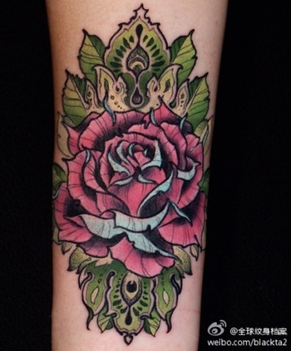 阿辛彩色纹身图案玫瑰花纹身图片_玫瑰花纹身图案大全_纹身图吧