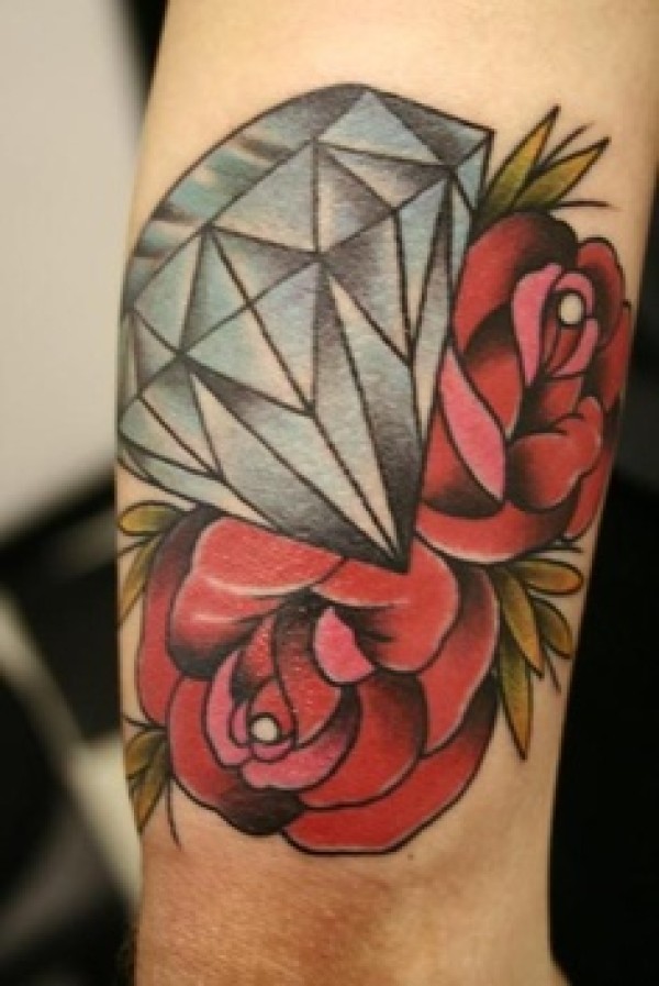 分享一款个性潮流的玫瑰花钻石纹身图案_玫瑰花纹身图案大全_纹身图吧