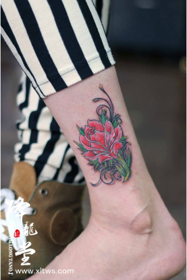 女生腿部时尚唯美的彩色玫瑰花纹身图案_玫瑰花纹身图案大全_纹身图吧