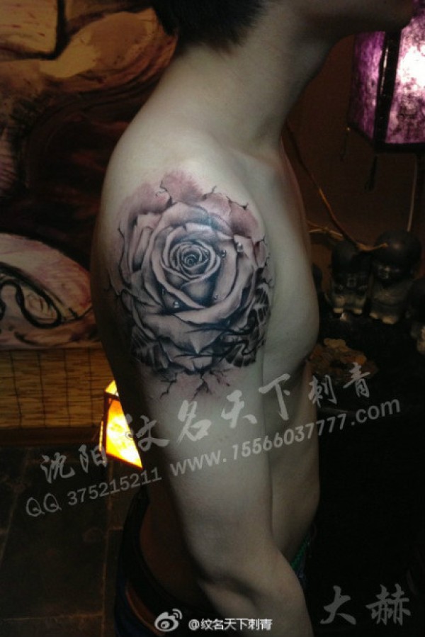 男生手臂经典写实的黑灰玫瑰纹身图案_玫瑰花纹身图案大全_纹身图吧