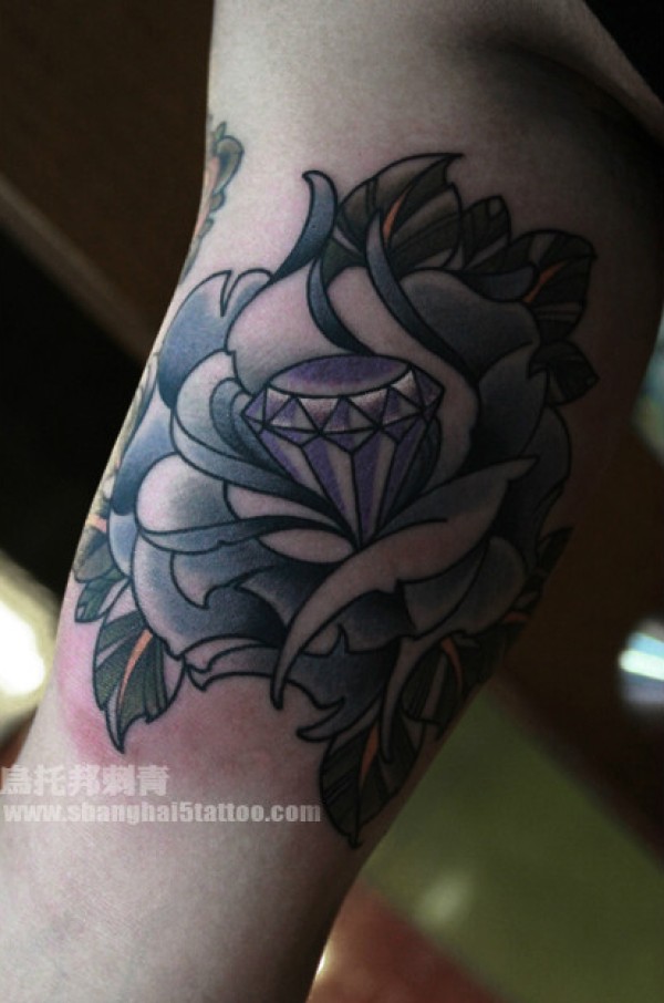 手臂内侧潮流时尚的钻石与玫瑰花纹身图案_玫瑰花纹身图案大全_纹身图吧