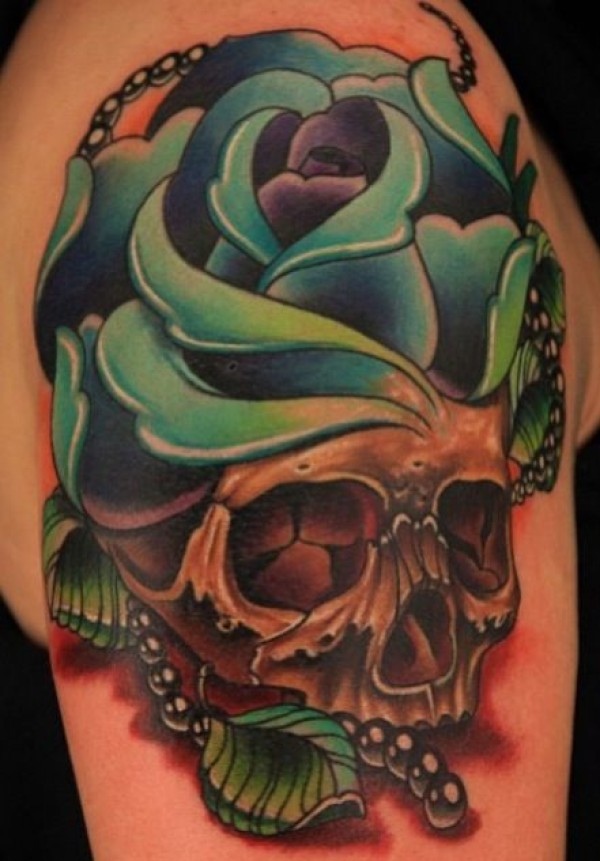 分享一款潮流经典的玫瑰骷髅纹身图案_玫瑰花纹身图案大全_纹身图吧