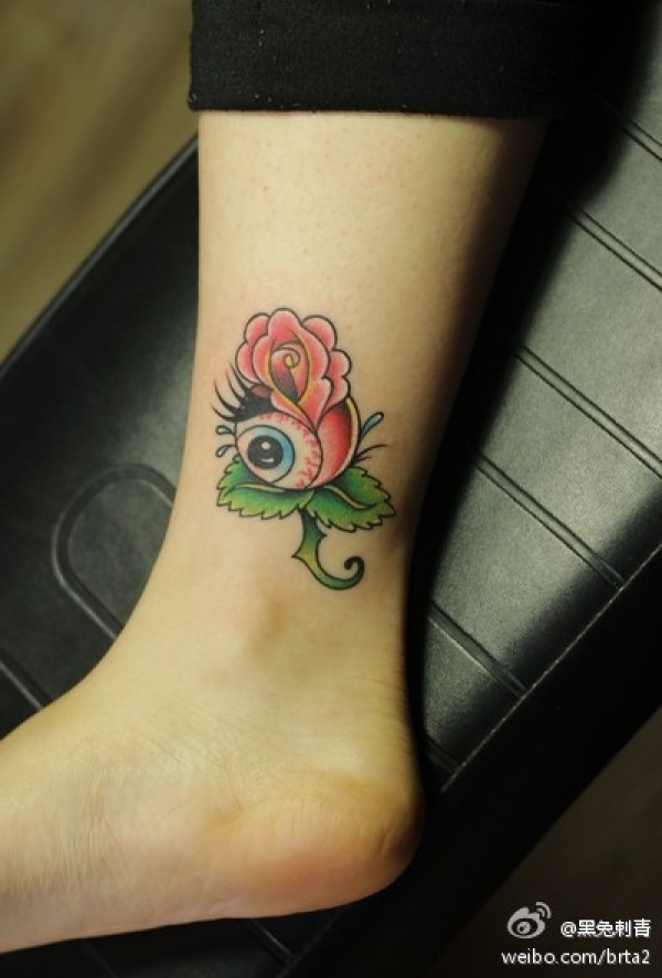 女生腿部另类经典的眼睛玫瑰花纹身图案_玫瑰花纹身图案大全_纹身图吧