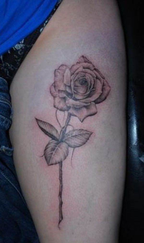 腿部唯美写实的黑灰玫瑰花纹身图案_玫瑰花纹身图案大全_纹身图吧