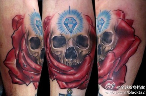 一款很酷经典的骷髅玫瑰纹身图案_玫瑰花纹身图案大全_纹身图吧