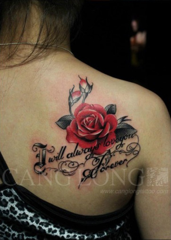 美女肩背潮流唯美的玫瑰纹身图案_玫瑰花纹身图案大全_纹身图吧