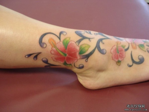 推荐一款脚背玫瑰花纹身图案_玫瑰花纹身图案大全_纹身图吧