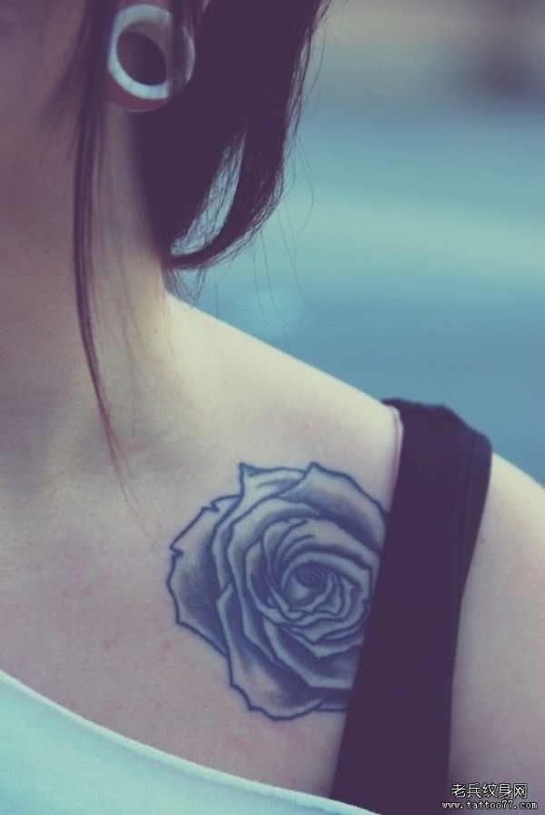 分享一款锁骨玫瑰花纹身图案_玫瑰花纹身图案大全_纹身图吧
