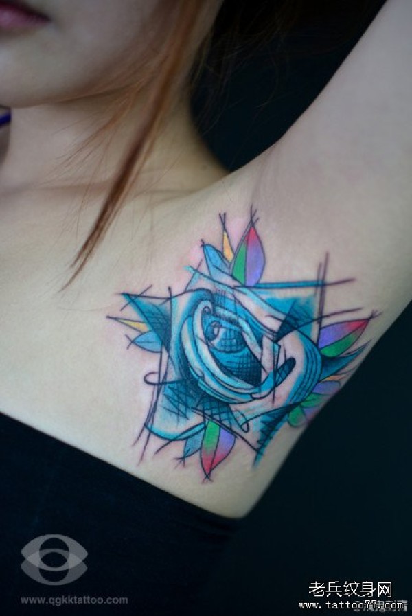 美女腋下漂亮的彩色玫瑰花纹身图案_玫瑰花纹身图案大全_纹身图吧