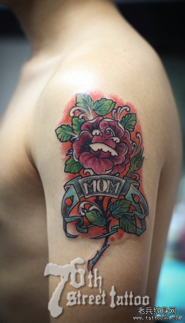 男人手臂唯美漂亮的school风格的玫瑰花纹身图案_玫瑰花纹身图案大全_纹身图吧