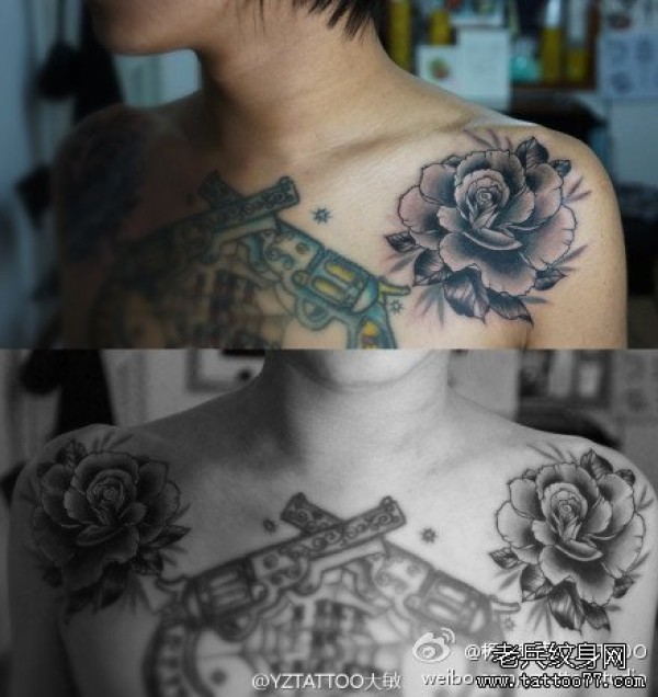 时尚胸部玫瑰花纹身_玫瑰花纹身图案大全_纹身图吧