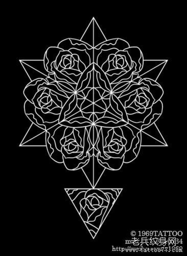 一款潮流经典的线条玫瑰花纹身图案_玫瑰花纹身图案大全_纹身图吧