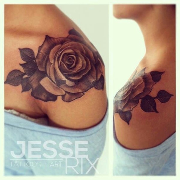 推荐一款大臂玫瑰花纹身图案_玫瑰花纹身图案大全_纹身图吧