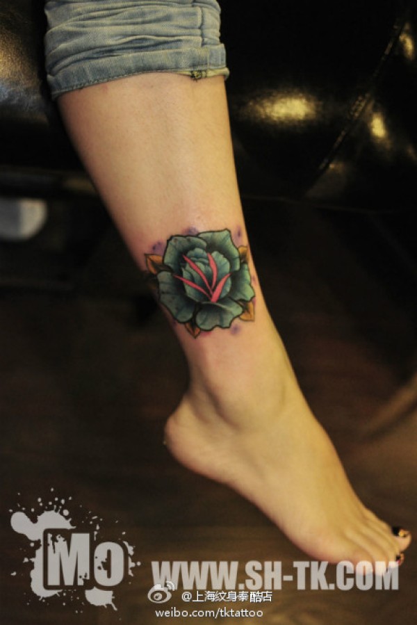 女生腿部艳丽潮流的玫瑰花纹身图案_玫瑰花纹身图案大全_纹身图吧