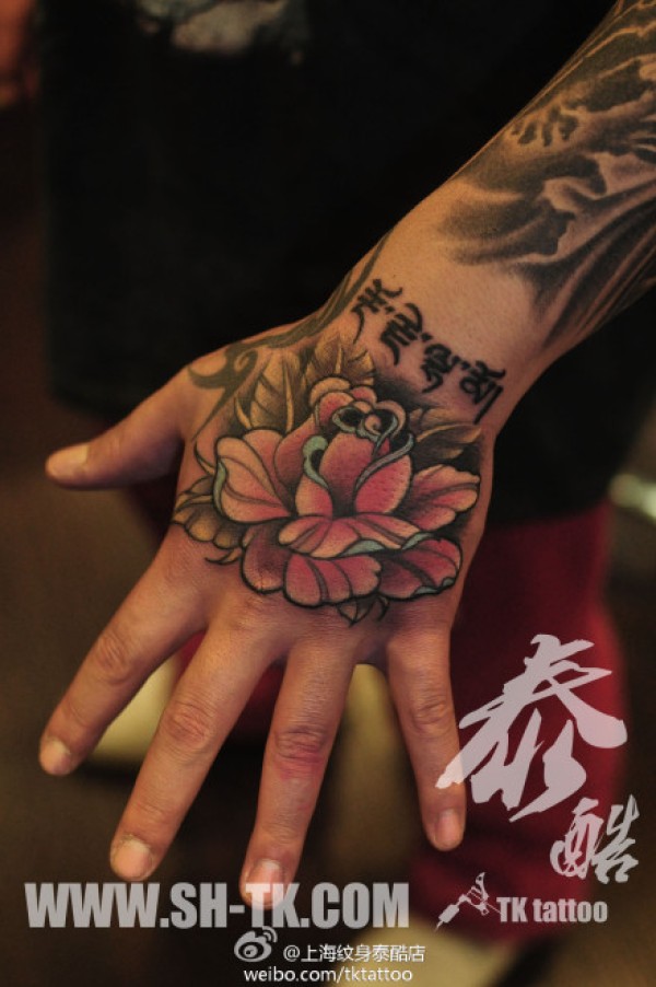 潮男手背大红玫瑰花纹身_玫瑰花纹身图案大全_纹身图吧