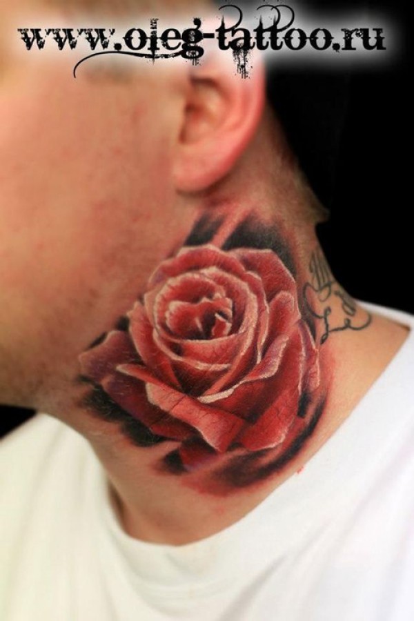 脖子处时尚经典的玫瑰花纹身图案_玫瑰花纹身图案大全_纹身图吧