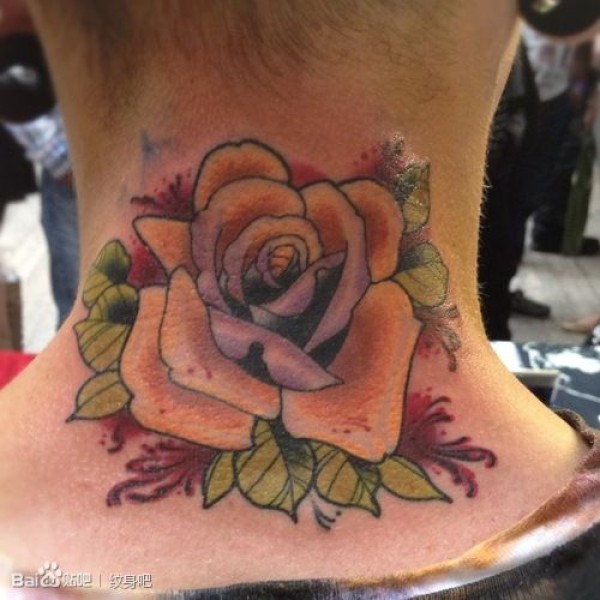 颈部时尚漂亮的玫瑰花纹身图案_玫瑰花纹身图案大全_纹身图吧
