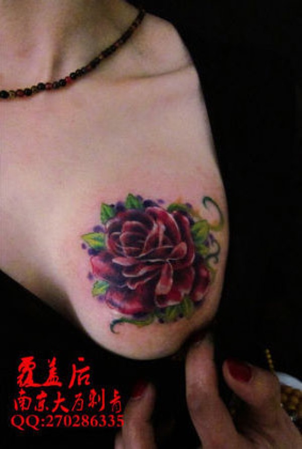 时尚胸部玫瑰花纹身_玫瑰花纹身图案大全_纹身图吧