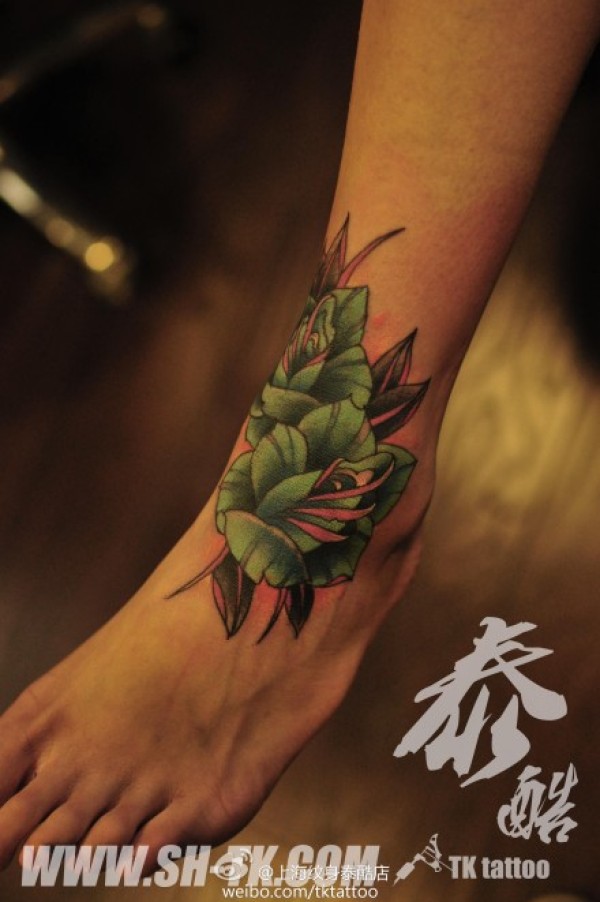 脚部时尚精美的彩色玫瑰花纹身图案_玫瑰花纹身图案大全_纹身图吧