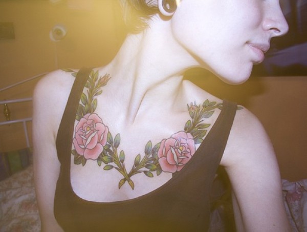 女生前胸时尚唯美的玫瑰花纹身图案_玫瑰花纹身图案大全_纹身图吧