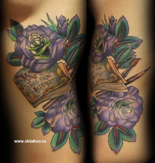 侧腰时尚精美的玫瑰花纹身图案_玫瑰花纹身图案大全_纹身图吧