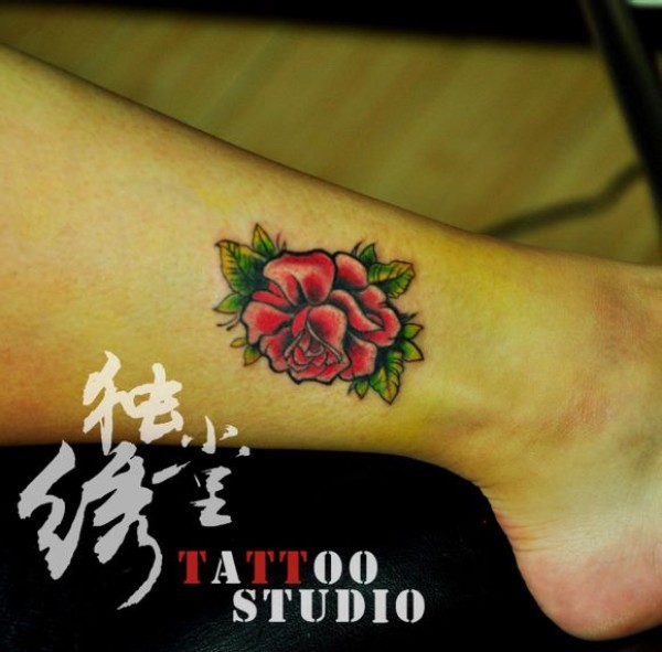 腿部小巧唯美的玫瑰花纹身图案_玫瑰花纹身图案大全_纹身图吧