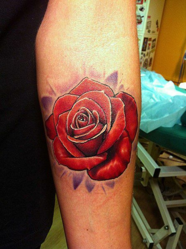 手臂一款红色玫瑰花纹身图案_玫瑰花纹身图案大全_纹身图吧