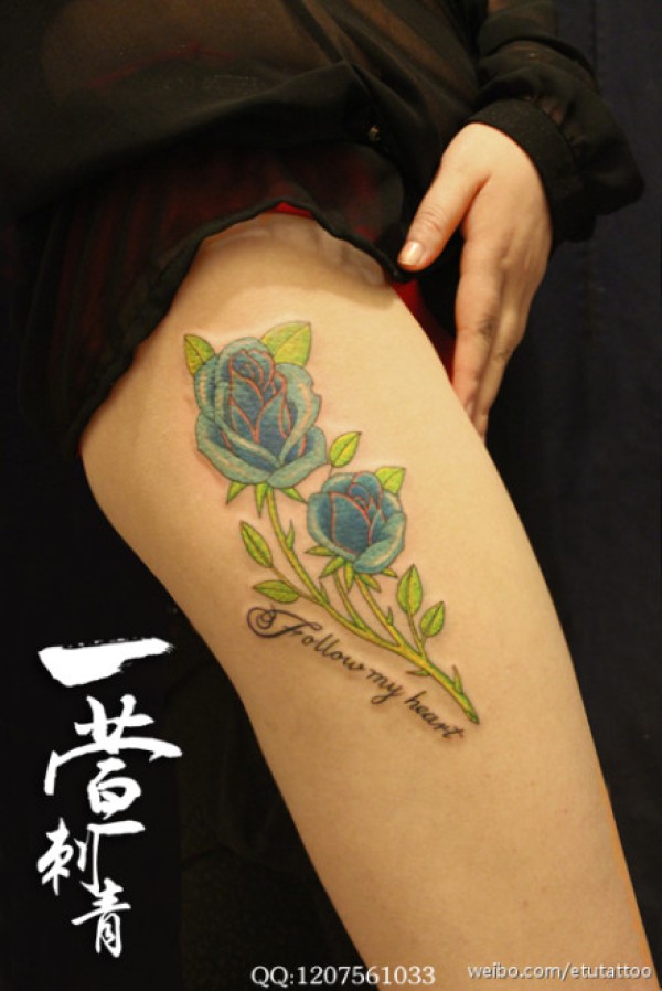女生腿部漂亮好看的彩色玫瑰花纹身图案_玫瑰花纹身图案大全_纹身图吧