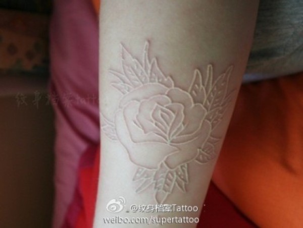 手臂好看的一款白色线条玫瑰花纹身图案_玫瑰花纹身图案大全_纹身图吧