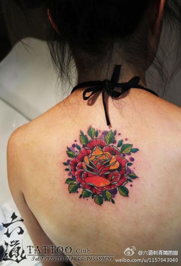 女生背部好看的欧美风格的玫瑰花纹身图案_玫瑰花纹身图案大全_纹身图吧