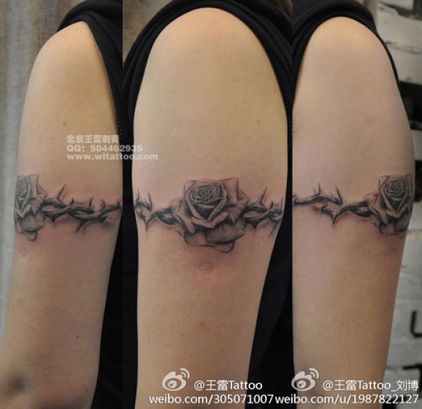 男生手臂好看经典的玫瑰花与荆条纹身图案_玫瑰花纹身图案大全_纹身图吧