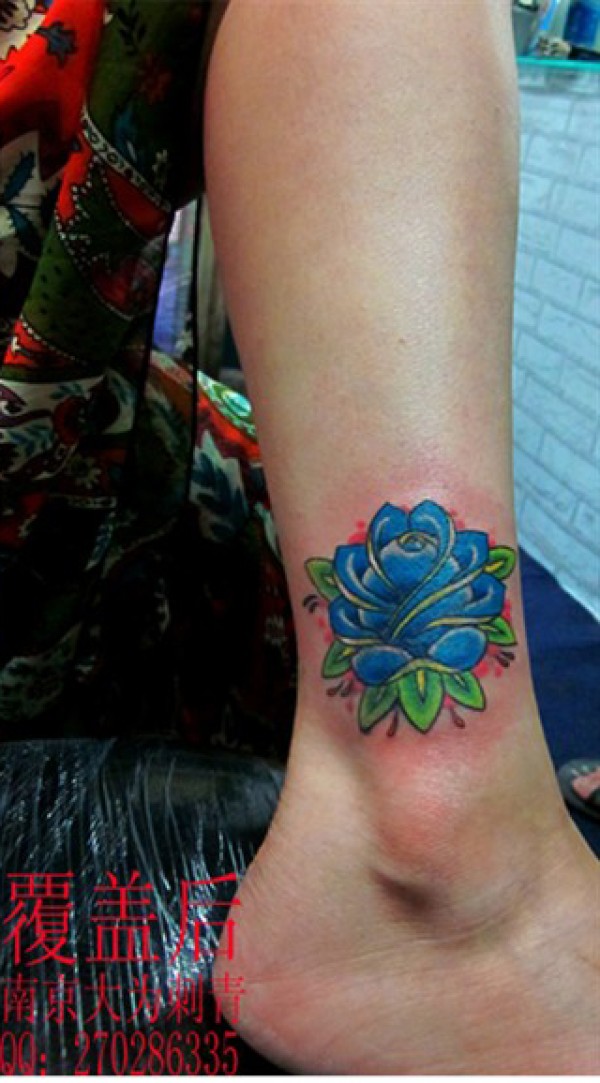 耳后蓝色妖姬玫瑰纹身_玫瑰花纹身图案大全_纹身图吧