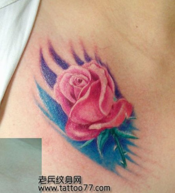 时尚胸部玫瑰花纹身_玫瑰花纹身图案大全_纹身图吧
