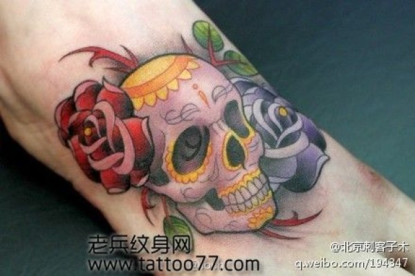 精美的骷髅玫瑰花纹身图案_玫瑰花纹身图案大全_纹身图吧